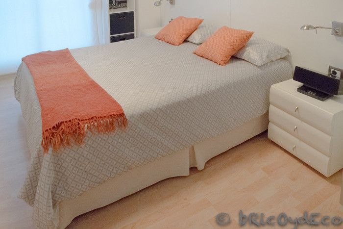 Como ya os he comentado, los pasos para hacer lo mismo con la funda nórdica son iguales que los seguidos en la funda de la almohada. En la siguiente foto podéis ver el resultado final con la funda y los almohadones ya colocados sobre la cama.