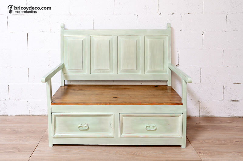 La misma receta de la imprimación te sirve para la pintura final, pero tendrás que proporcionarle un acabado con barniz incoloro o cera. Si aplicas barniz puedes elegir uno de más o menos brillo. Por otra parte la cera te dará un acabado satinado, pero ten en cuenta que deberás renovarla cada cierto tiempo y no repele tanto las manchas como el barniz.
